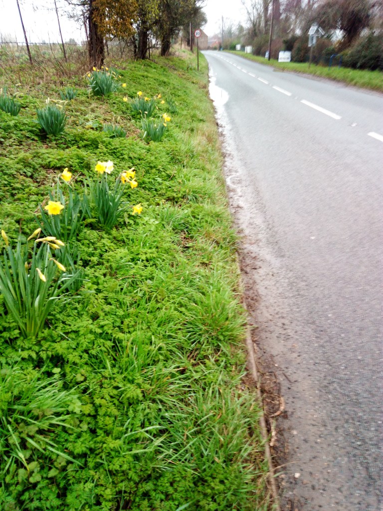 The roadside verge, where the village has previously established daffodils, it is intended to reintroduce perennial wildflowers in the upper 2/3rds of the grass bank to greatly broaden the number of species along the roadside.