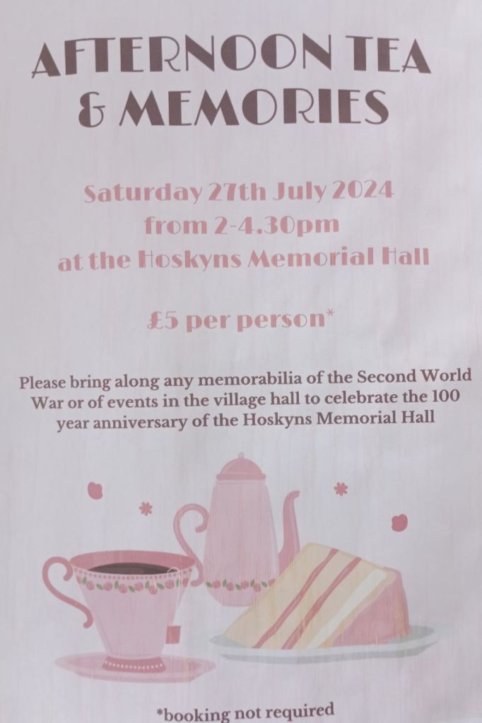 On Saturday 27th from 2pm until 4.30pm the Village Hall Committee are repeating last year’s Afternoon Tea & Memories event. £5 entry, no need to book. Everyone is welcome.